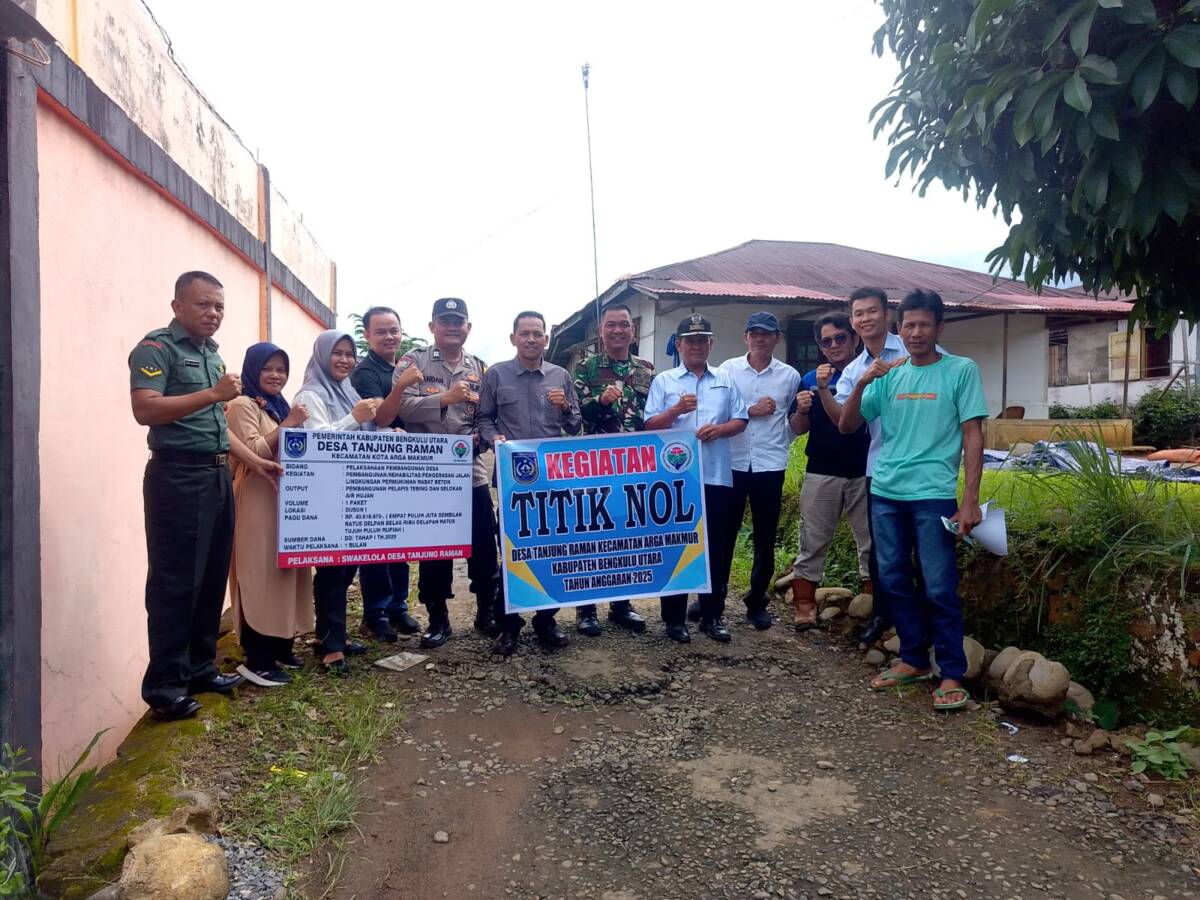 SEKBER MEDIA BENGKULU UTARA-Desa tanjung raman,Kecamtan Argamakmur Kabupaten Bengkulu Utara Melaksanakan Titik nol langsung ke lokasi Pekerjaan pembagunan yang di laksanakan pada hari rabu tanggal 23/4/2025