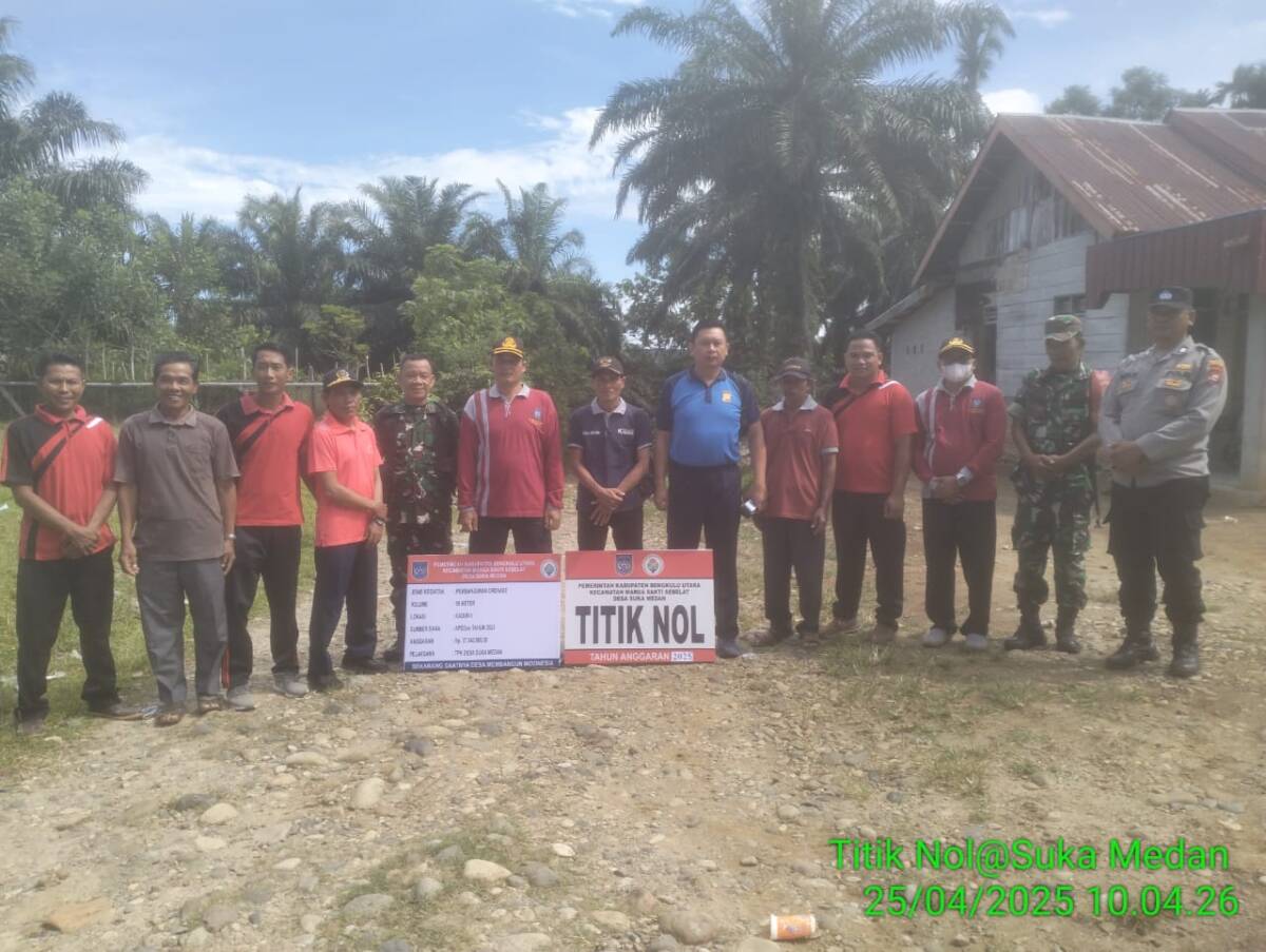 Desa Suka Medan,Kecamatan Marga Sakti Sebelat, Kabupaten Bengkulu Utara Melaksanakan Titik nol langsung ke lokasi Pekerjaan pembagunan yang di laksanakan pada hari Jum’at tanggal 25/4/2025