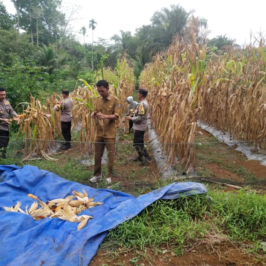 Pemerintahan Desa (Pemdes) Air Putih, Kecamatan Marga Sakti, Sebelat, Kabupaten Bengkulu Utara melaksanakan Panen Raya Jagung, Ubi, Cabe, Tomat, Terong, hingga Ikan Lele dan Nila.
